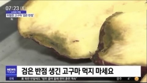 균에는 독소가 있어 반점이 있는 고구마를 그대로 먹었다가는 식욕 감퇴와 호흡곤란, 설사 등 중독 증세가 나타날 수 있습니다.
