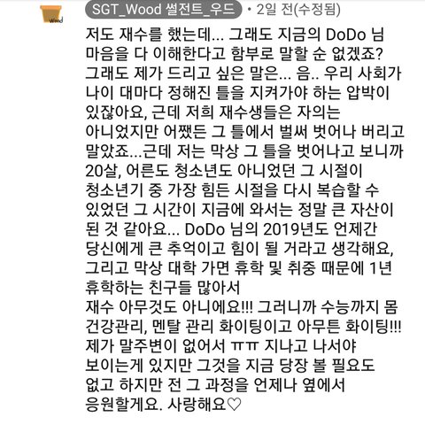 '저도 같은 시절을 겪었지만, 지금 당장 수능을 앞둔 분들을 함부로 공감한다고 말하는게 조심스럽네요'