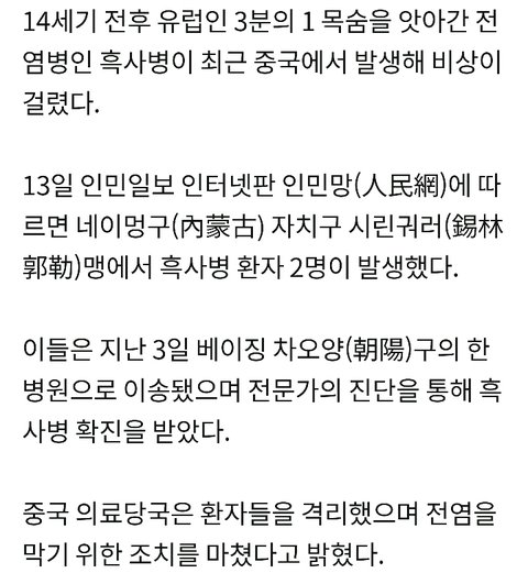 저기요..뉴스제대로 보세요 중국은 매년 흑사병 발병하고 있어요 선동질마세요