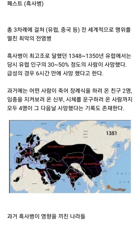 약 7500만명 이상의 인구를 죽게 만든 인류 역사상 최악의 전염병