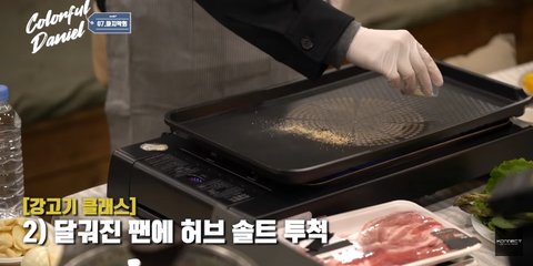 2. 달궈진 팬에 허브 솔트 투척