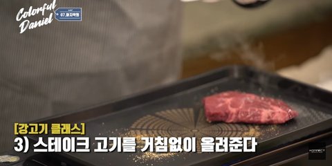 3. 스테이크 고기를 거침없이 올려준다