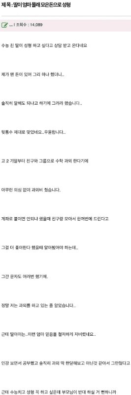 돈 내놓으라고 할 듯 일단 부모한테 구라친 게 문제야