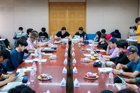 드라마 <스토브리그>의 첫 대본 리딩 현장이 공개됨.