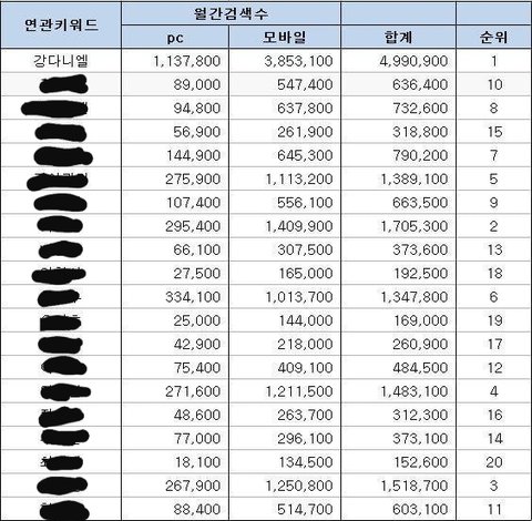 3차순발식 끝난 뒤 집계한 생방진출멤 전부 월간 검색량이야