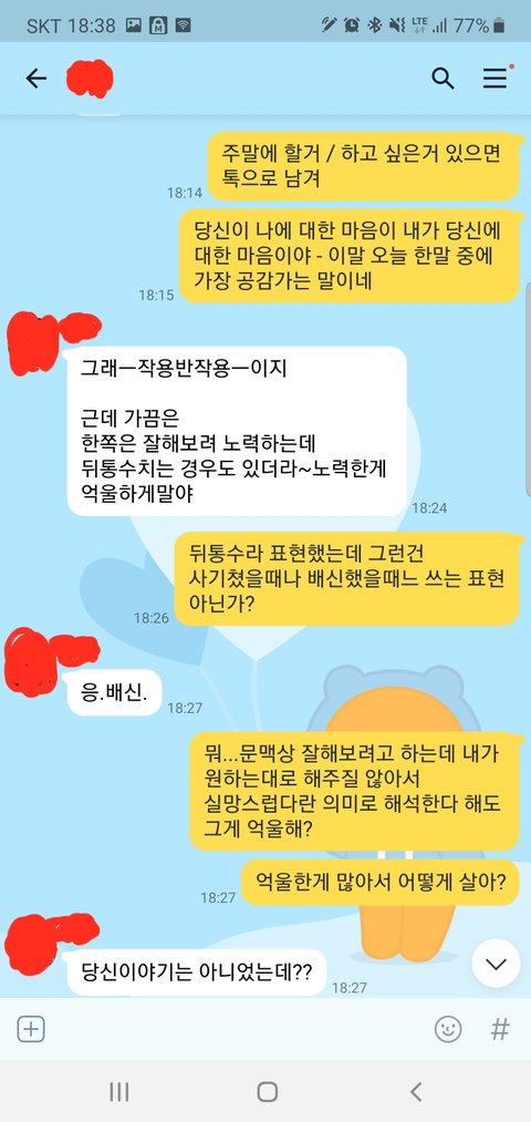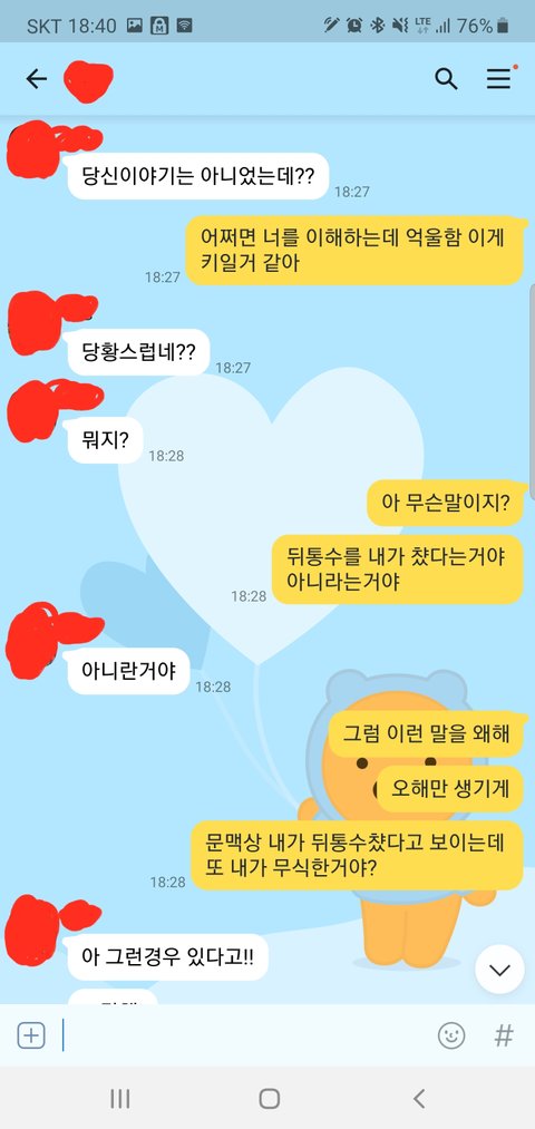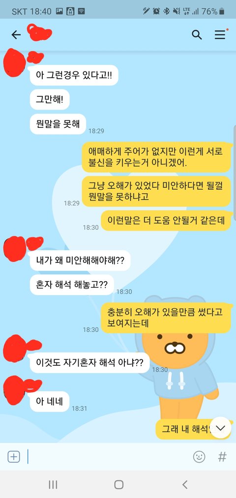 와이프와 카톡으로 다투고 나서 아직도 가슴이 두근두근 거리네요