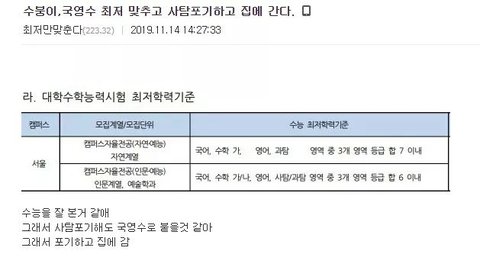 쌤들이 귀에 딱지앉도록 말하셨는데 이번년에 대학 못갈 운명이엇나보지..