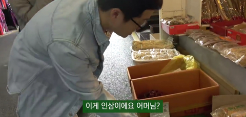 이게 인삼이냐고 물으면서 어디에 좋은거냐고 물어봄
