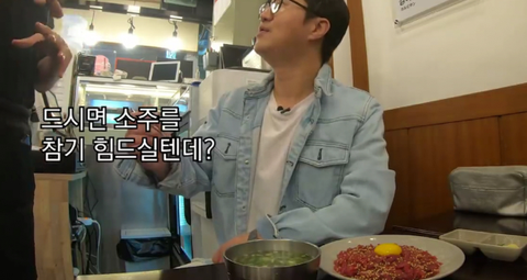 식당 아주머니가 (국물) 드시면 소주를 참기 힘드실텐데..? 라고 말함