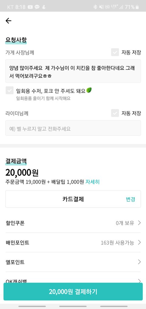 치킨 시키면서 어플에다 주접도 한번 떨어봤어ㅋㅋㅋㅋㅋ
