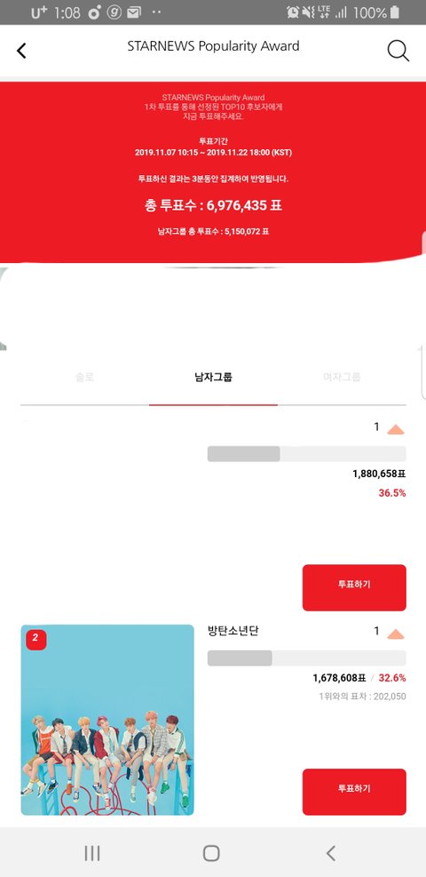스/타/폴 어플 받아서 남자그룹 투표하면 되고 지금 2위야