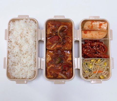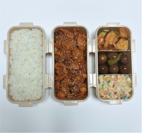 장조림이랑 오이무침은 친한 동생이 보내줘서 그대로 담았구요 콘샐러드 하나 후다닥 만들었어요