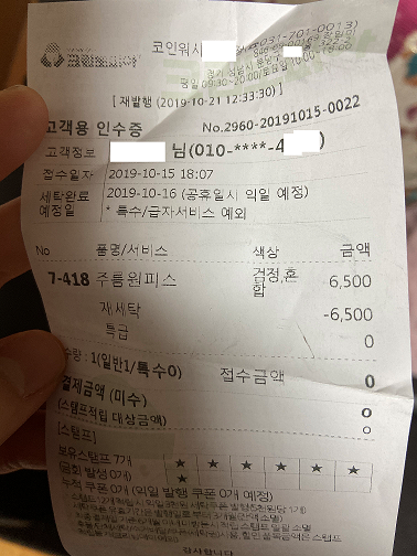 손빨래 하려다가, 깨끗하게 입고 싶어서 비싸지만 6000원주고 집 앞에 3년간 애용했던 크린***에 맡겼어요...