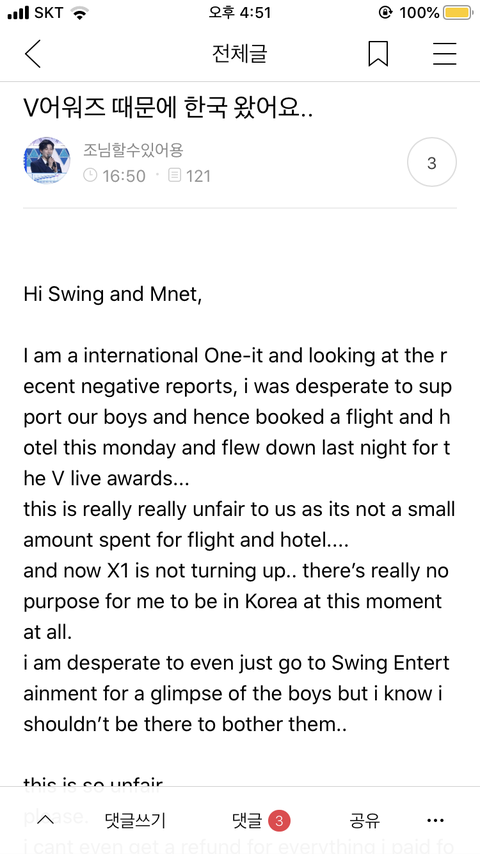 V하트비트 엑스원 불참한다고 하루전에 통보해서 팬들 패닉상태임.. 이 외국인은 공연보려고 한국까지 왔다는데 예매한 팬들이 잘못한건 아니자너 ㅠㅠ 팬들 불쌍.. 그리고 뭐 티켓양도 20에 받은팬도 있다던데 어캄 ㅠ
