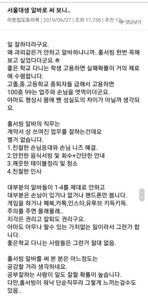 그렇긴해..남들 쳐 놀때 성실히 공부해서 서울대 간거니까 인성은 몰라도 성실한건 인정해줘야지!!!