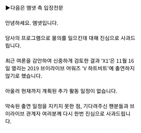 엑스원 스케쥴 중지라는데???