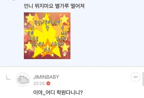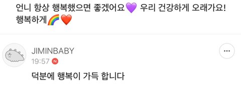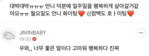 행복해하는 팬을 보는 지민이도 요즘 너무 행복하대>//<