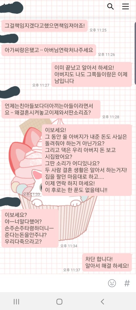 아버지는 그쪽과 서류정리 끝내고 연락 끊었는데...저쪽에서 남은 돈 다 내놓으라네요.