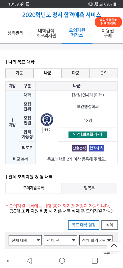 다름이 아니라 메가에서 정시 합격예측을 했을때 이 사이트에서는 안정이 떴는데 실제론 불합격할 수도 있나요?