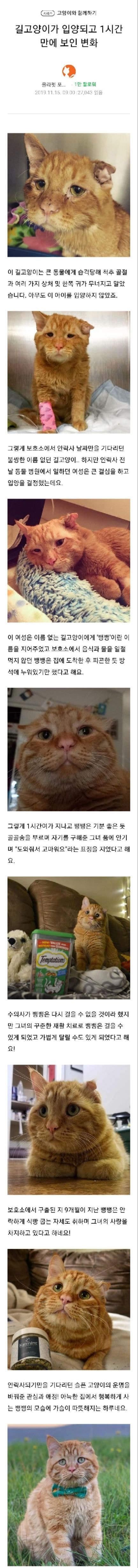길고양이가 입양되고 1시간만에 보인 변화