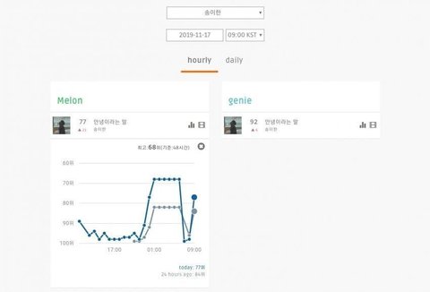 프듀 주작은 ㅈㄴ 잘잡으면서 더 심각한 사재기 가수들은 언제까지 방치하고 있을련지 모르겠다 예전에는 1위부터 쭉 전체재생으로 들었는데 요즘에는 사재기 가수들 너무 많아서 그러지도 못함 ㅋㅋ 진짜 지긋지긋