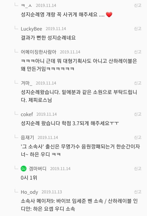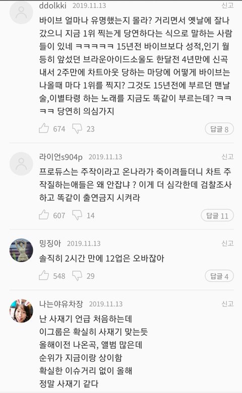 사재기 논란으로 성지순례 댓글