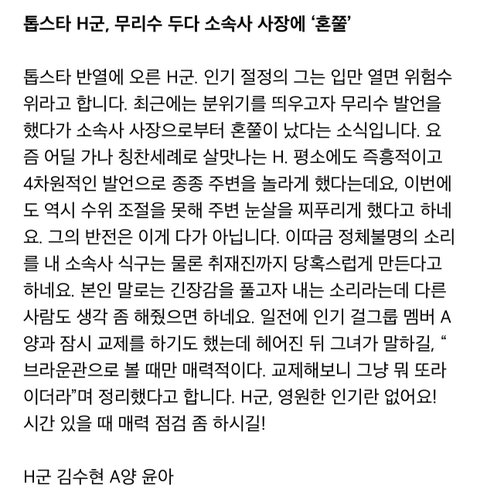 난 최근에야 네이트를 하면서 내 최애를 검색 해봣는데 좀 오래전이지만 이런게 뜸 ..... 인터넷 찾아보니까 2012년도때 라면서 꽤나 소문이 많던데 .... 진짜 둘이 예전에 잠깐 사겻엇나?? ...