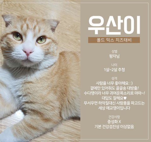 아이는 스코티쉬폴드 믹스로 보여지구요