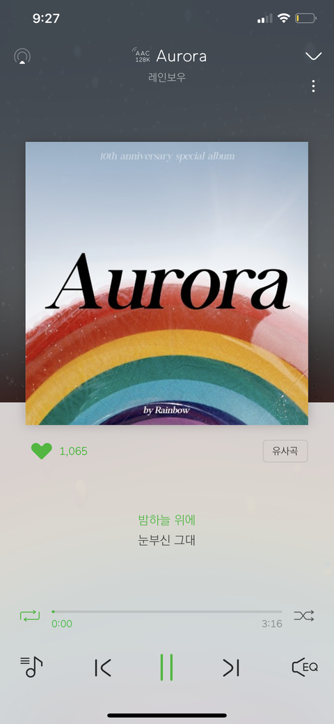 앨범명은 Over the rainbow고 곡은 I dream of you랑 Aurora가 있는데 첫번째 곡은 선공개였고 오로라가 타이틀곡이야