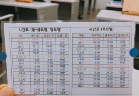 휴대폰 제출 후 입실 학습시간에 문이 자동으로 잠김 화장실 또한 불가 (나갈수는 있는데 소음방지를 위해서 교시중에는 재입실 안된다고 함) 휴식시간에만 다시 문이 열림 귀가시 폰 수령