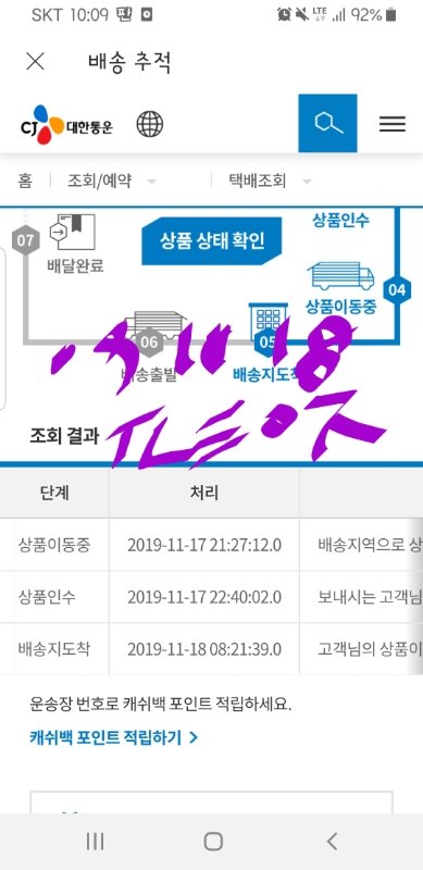기대해라 이삐들 8시까지만해도 집하출발 아니었다.. 근데 여기 남쪽인데 벌써 배송지 도착 접때도 알림은 늦고 택배 빨리와서 경비실 하루 있었다능 중요한 택배 아닌줄알고 늦게 찾으러 가서 개후회