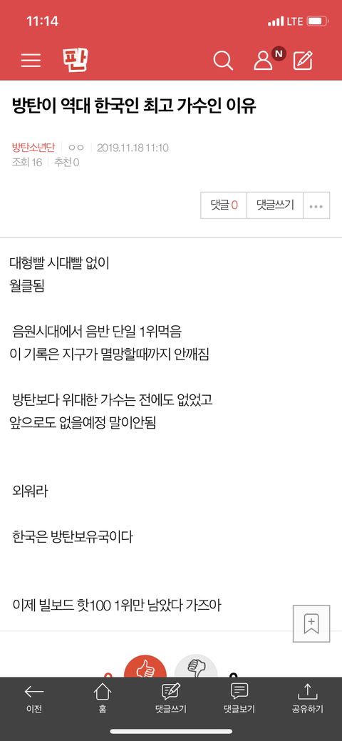 밑 방탄이 역대 여기서봐 ㅇㅁㄱ