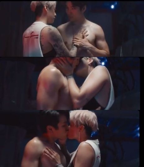 뮤비에서 엠버는 상의 탈의한 남자에게 다가가 거칠게 키스를 하는 장면을 본,,