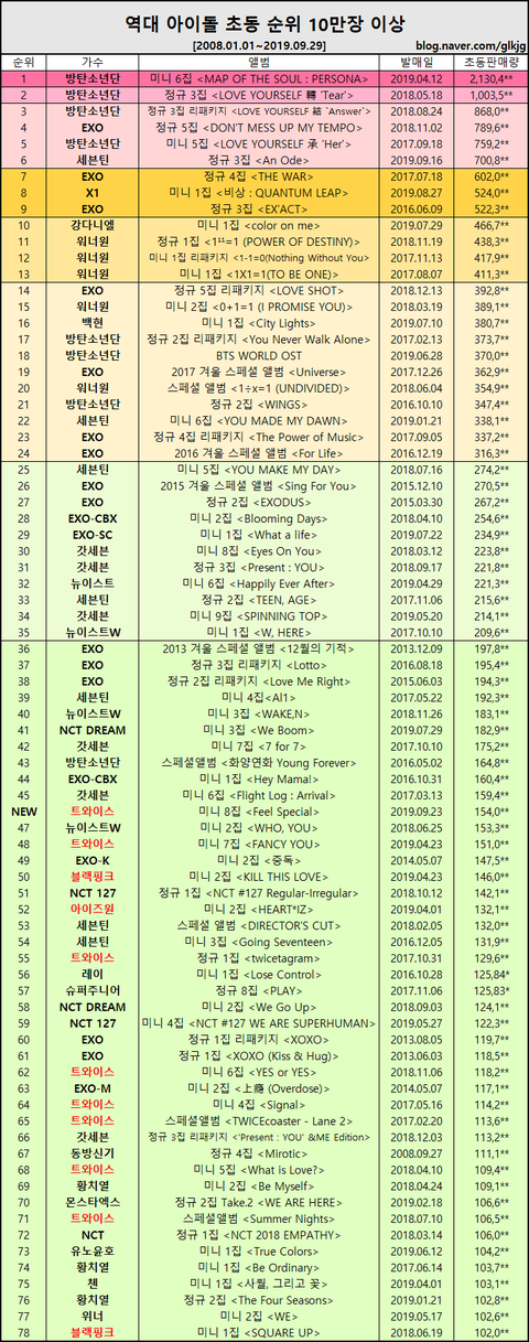 방탄 초동 213만장이었냨ㅋㅋㅋ
