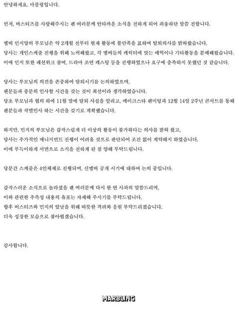 간만에 보는 솔직한 아이돌 탈퇴 안내문
