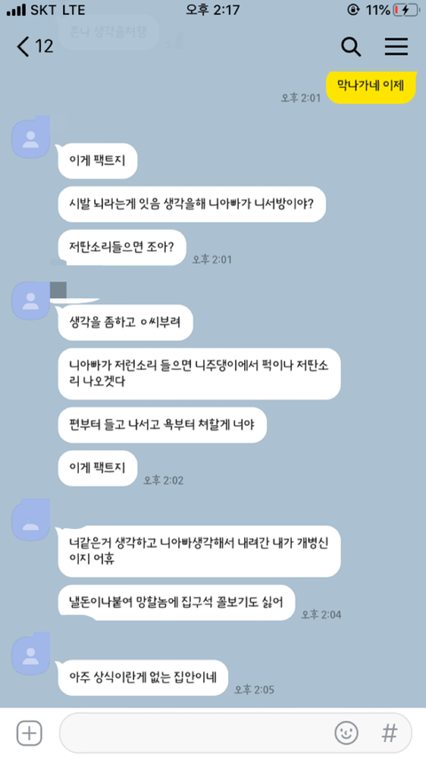 각서가 뭐냐면서 저희 집안에대해 폭언까지 합니다
