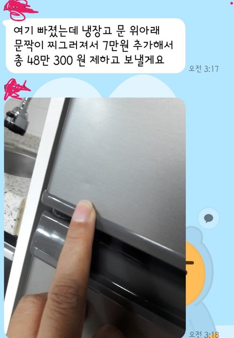 보호 비닐?같은거 안뜯고사용했거든요.세면대는 제가 오일통떨어뜨려서 구멍난거있어서 말씀하시면 당연히고쳐드리려고했는데ㅠ 집주인아줌마 누구들어오면 청소본인이하거든요ㅠ 저랑 옆집빼고 저희층 아래층 입주계속바뀌었는데 도배들어오는거 한번도 못봤거든요. 냉장고 저런거 수리비가7만원이나 하나요ㅠ