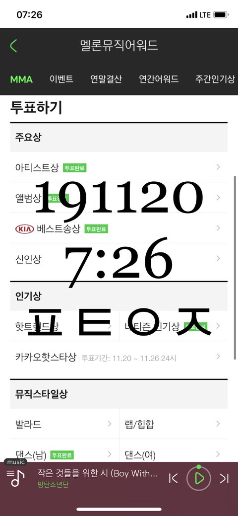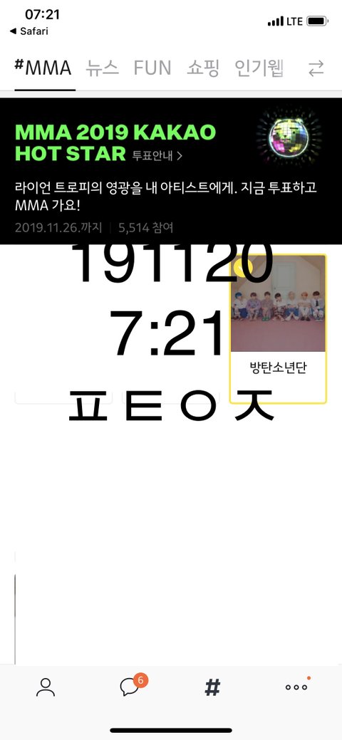 부문투표 창에서 카카5핫스타상 누르면 카카5로 자동 연결되고 멜롱이랑 연동해줘야돼