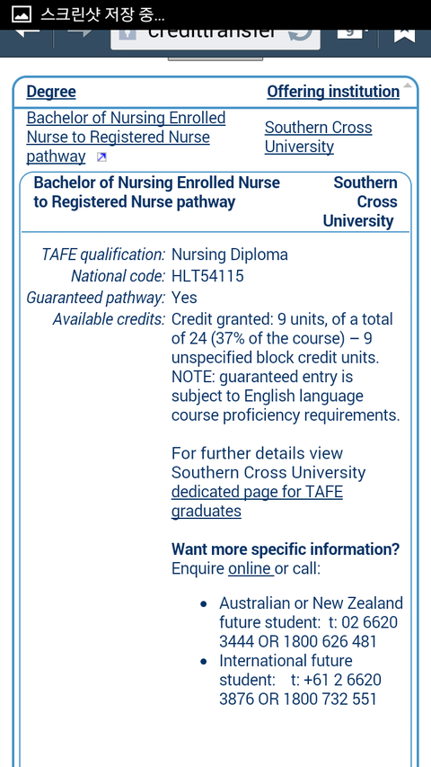 호주 간조자격증소유& 호주간조자격증취득에 필요한 학위(diploma of nursing HLT54115)소지자는 간호학 학사(bachelor of nursing)과정 진학시에 전체학점의 37%를 면제(학점인정)받는다고 씌여있다.