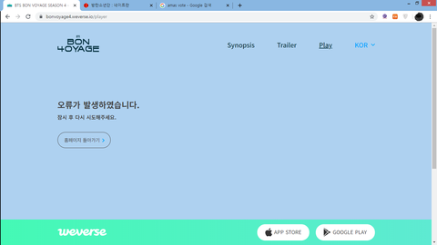 어제 보려했다가 피곤해서 오늘로 미룬건데 저난리남... 어제 로그인 했을때는 화면 정상적으로 나왔었오ㅠㅠ어케해야하징ㅠㅠㅠ내사랑 본보 얼릉보고시푼데ㅠㅠㅠ