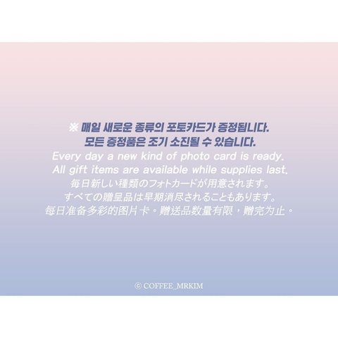 하루에3종의 랜덤포카가 준비되며 3일 총 9종 입니다 24일 세트메뉴를 드시면 당일 준비되는 3종의 포카를 받으시는 겁니다 :)