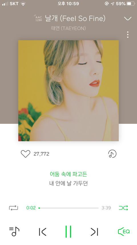 듣자마자 소름이 돋았던 곡 처음에는 잔잔하게 가다가 클라이맥스 때 팡 하고 터트리는데 진짜 전율이 흐르고 소름이 돋을만큼 태연의 보컬이 캐리한 곡이라고 생각함 진짜 이거 내 태연 명곡 top3에 2임 1은 그래비티 3은 i blame on you
