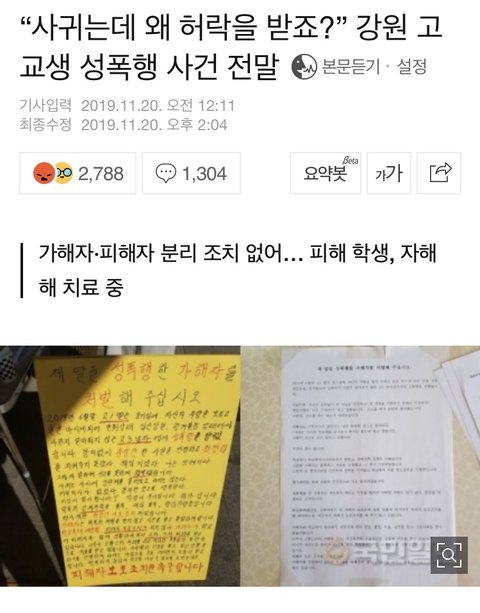 + 피해자가 언론에 알리는거에 대해 처음에 망설였던 게 학폭위 위원들이나 네X버 댓글처럼 ‘술마셨으니 원인제공 한거 아니냐’는 등의 2차 가해가 두려웠던 이유도 있으니 혹시라도 피해자에게 고통을 가중시키는 댓글 달지 말자 어떤 상황이든 강간은 씻을 수 없는 죄고 술을 마신다고 다 강간을 당하는 것은 아님