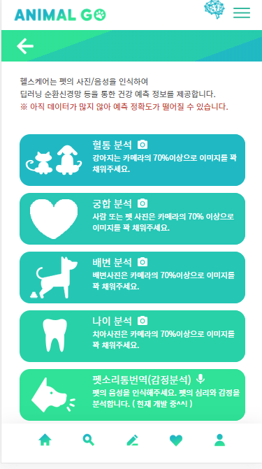 앱이름은 "애니멀고"인데요 AI혈통인식이라는 기능이 있어서 저희집 개의 사진을 업로드 했더니 어떤 혈통인지 확인해주고 상품추천과 건강상태까지 체크가 가능하더라구요 ㅎㅎ