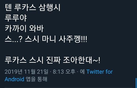그리고 텐이 루카스한테 루루라고 했는데 루카스가 루루가 누구냐고ㅋㅋㅋ그랬어