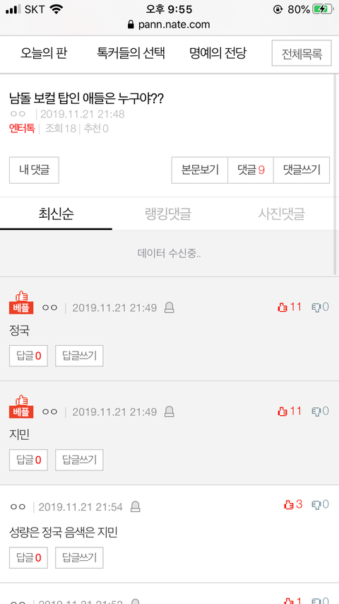 댓글 많은 톡