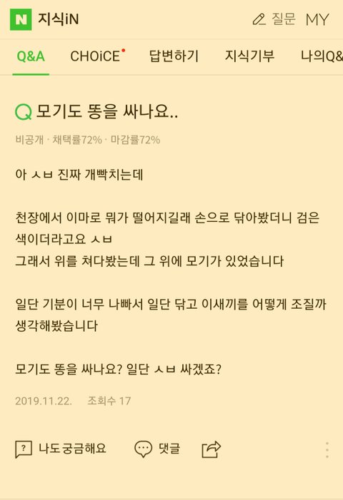 그래서 위에 쳐다봤는데 바로 위에 모기새1끼 있았다 씨1발 살다가 모기 똥도 맞아보고 ㅈㄴ 인생 스펙타클 하네