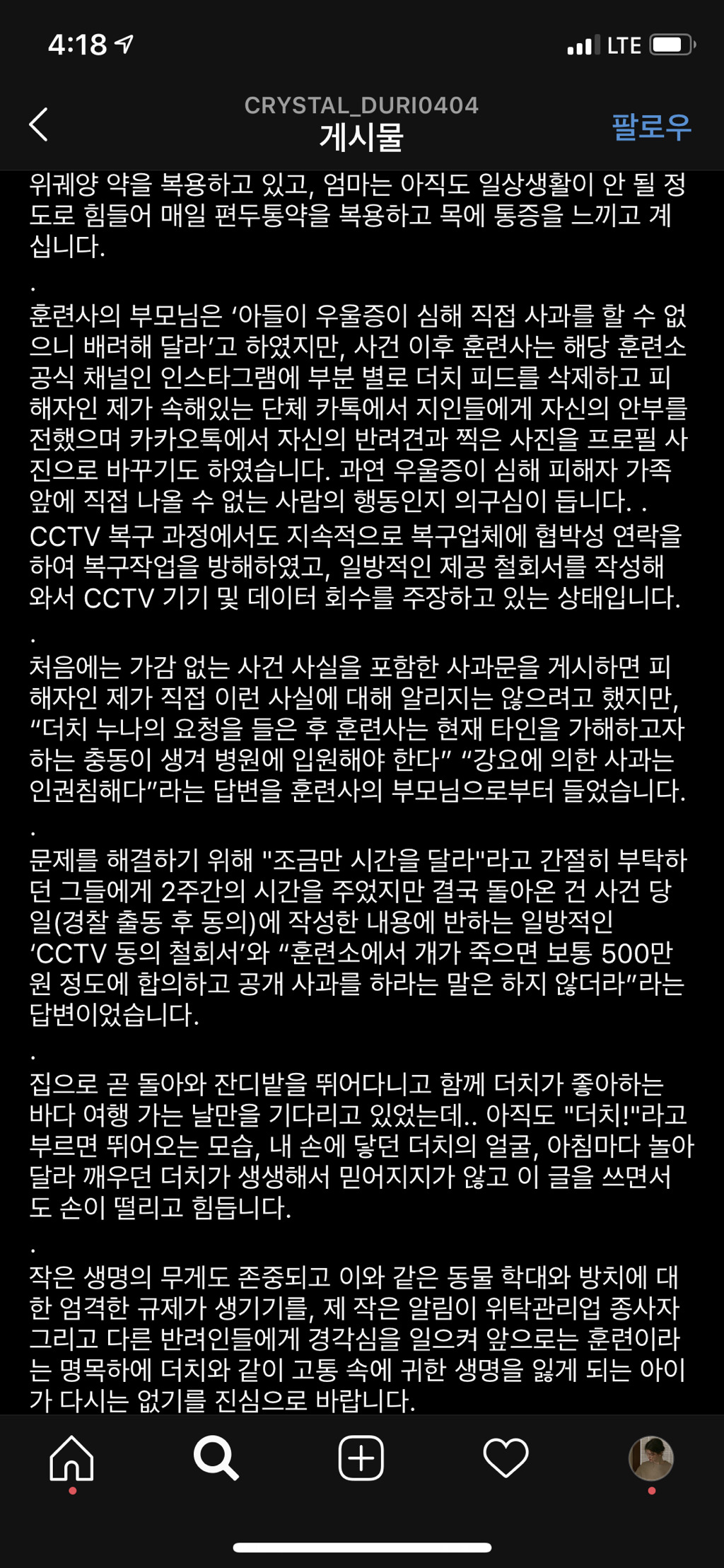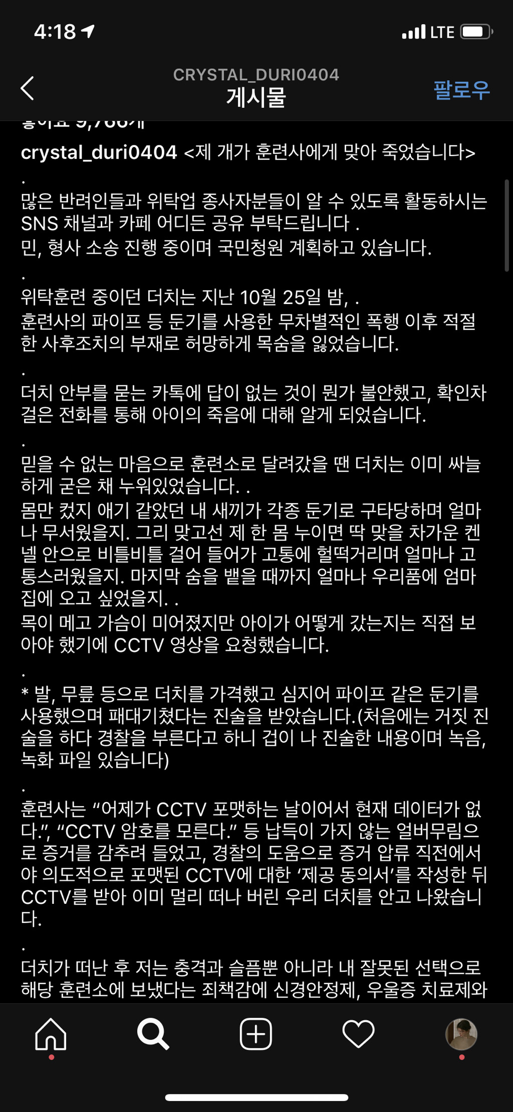 애견훈련소 보내지 말아요. 제가 애견훈련소에서 일해본 적 있는데 진짜 양심은 어디에 팔아먹은 소장들 더럽게 많아요. 좀 만만해 보이던가 돈 없을 거 같은 견주들 욕하고 돈 많거나 유명한 사람(연애인이라던가)오면 굽신굽신거리고 지네 욕심때문에 포화상태인데도 막 받고 그러다보니 관리도 잘 안됌. 그런식으로 방치되다가 견주들 온다 하면 급하게 훈련시켜야하니까 때려서 고분고분하게 만들고 견주들에게는 잘 고쳐지고 있다고 설명을 해요. 견주들은 그것도 모르고 좋다고 그러고........... 그리고 개가 아플경우 지네들이 약을 먹여서 치료해줌.........이 약들도 깨끗하게 관리 되는 거 아니고. 유통기한도 지난 약들도 있어요. 증상이 안 나아지거나 더 심해지면 그제서야 주인에게 통보하고 데려가고요. 예방접종도 마찬가지에요. 동물약국에서 백신 사다가 지네들이 맟추고 돈 받아가요. 견주들에게는 병원데려가서 맞췄다고 하고 가짜 영수증을 만들어서요. 그리고 혹시나 훈련사로 직업 생각하시는 분들 절대로 하지 마세요. 견습으로 들어가게 되면 100만원도 안되는 돈에 (저 같은 경우는 30만원 받았네요.....;;;2012년도에요.) 주5일제, 주6일제 그딴거 없고요, 한 달에 2번이나 쉬면 참 다행이죠.......정직원 되어도 소장들이 돈 아깝다고 사대보험 그런거 안 들어주고 돈 최저시급도 못 미치게 받아요. 저도 이런 점때문에 관두었어요. 그러니까 맡기지도 마시고 이쪽으로 일 할 생각도 하지 말아요ㅣ 이것도 많이 순화시킨거에요.