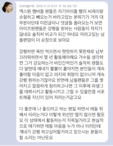 생각없는 남팬들 많아서그럼ㅋㅋ 나도 앚즈팬인데 욕먹는것도싫고 이미 이미지실추되서 걍 빠르게해체하고 그담에 뭐든지하면좋겟음