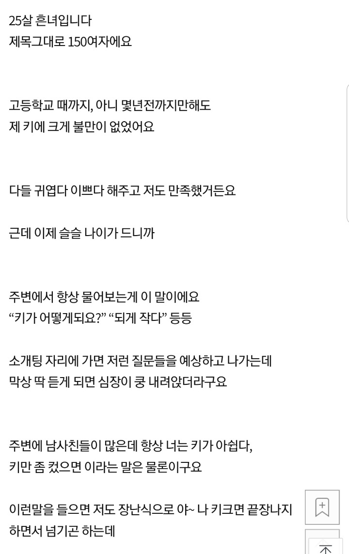 여자 키 150cm 너무 우울하네요.pan